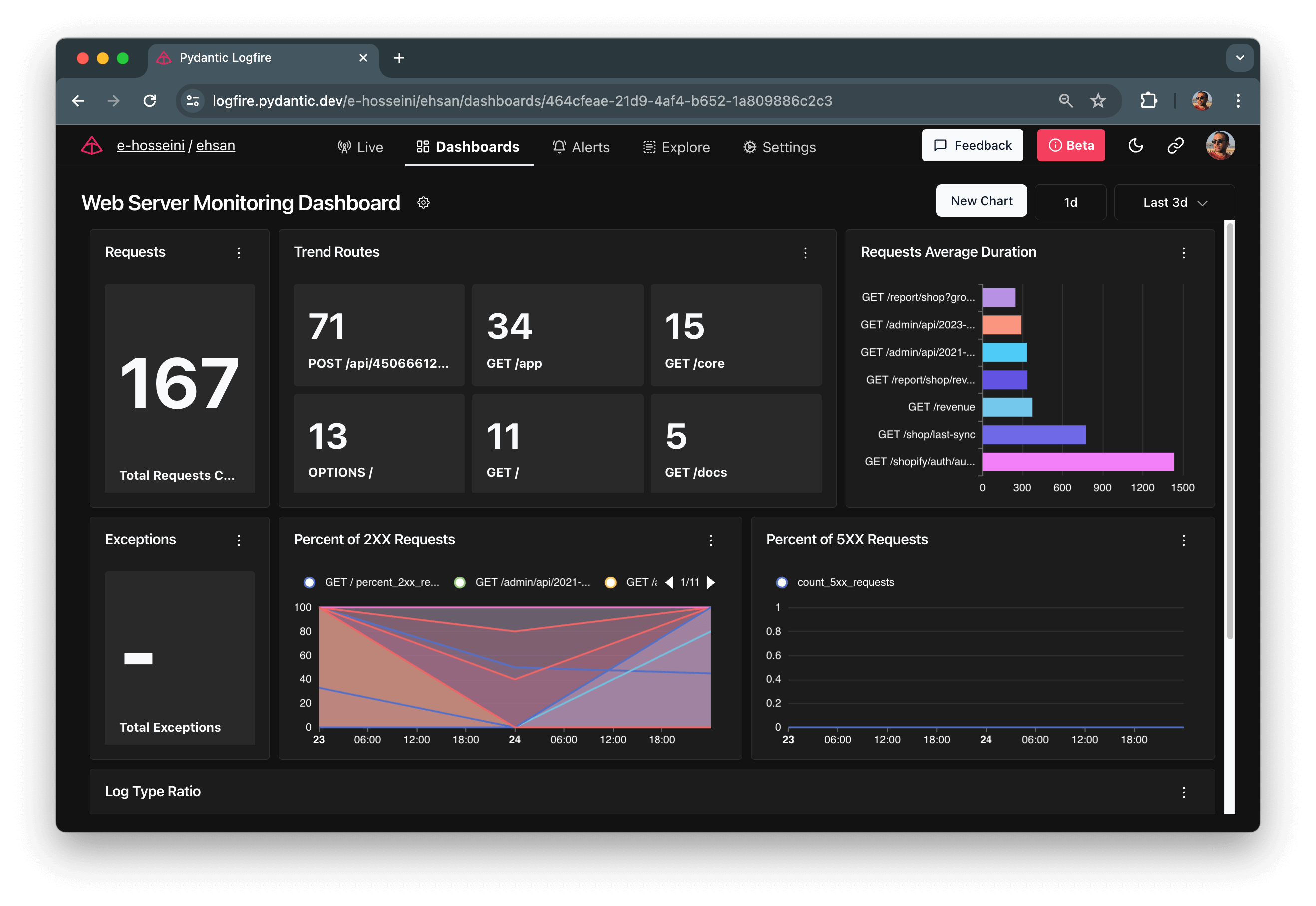 Logfire Dashboard